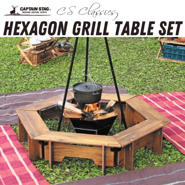 CAPTAIN STAG UP-1038 CSクラシックス ヘキサグリルテーブル CS Classics 送料無料 木製 ヘキサグリルテーブル セット 137 小